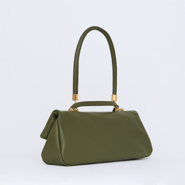 La borsa aperta ha la forma di un anfora e la capienza giusta per portare il necessario, un oggetto raffinato pronto ad impreziosire il tuo stile.